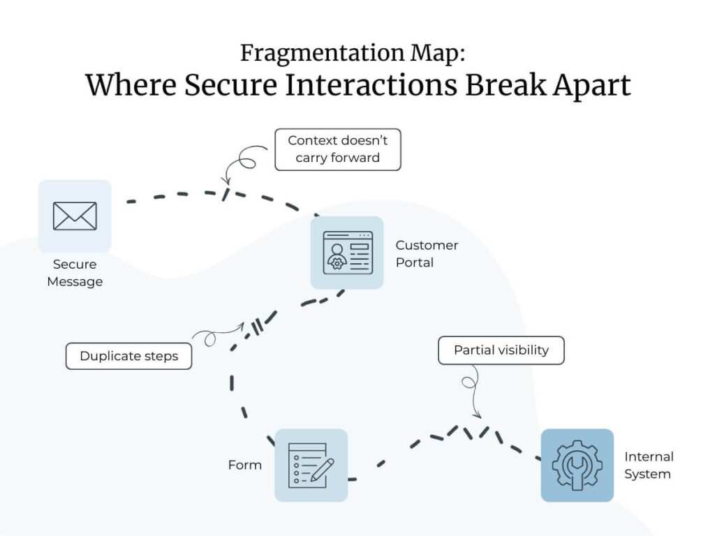Secure interactions were slower, more linear, and often confined to a single channel. Customers tolerated extra steps. Internal teams absorbed the friction. The experience wasn’t elegant, but it was familiar.
